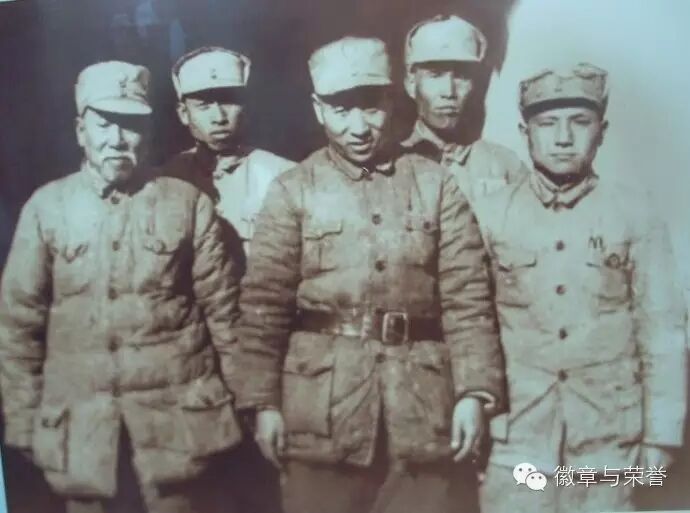 1938年冬摄于国民革命军第十八集团军驻陕办事处。前排中为林彪、后排左一为李天佑。