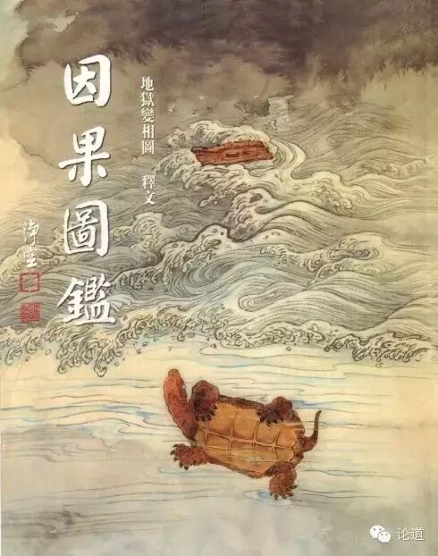 画面说明:盲龟遇浮木孔(一只眼睛失明的大龟,正好钻入漂泊在大海上的木块中的孔洞里!难得!难得!―― 形容:得人身 难!)