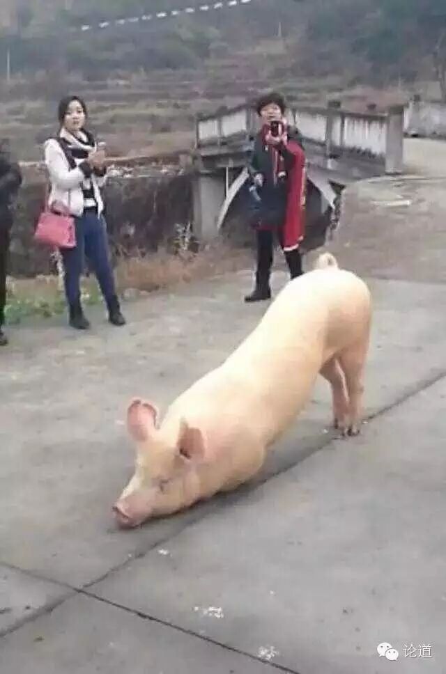 我们没有观这头猪过去生中因缘的神通,并不晓得它为什么大过年时跑到寺院门口下跪。我们曾听闻过牛羊狗类保护自己亲人等,给人下跪的例子,也有放生时动物给出家人等下跪的例子。猪下跪的情况头次听说,而这头猪,这次却是自己主动跑到了寺院门口。