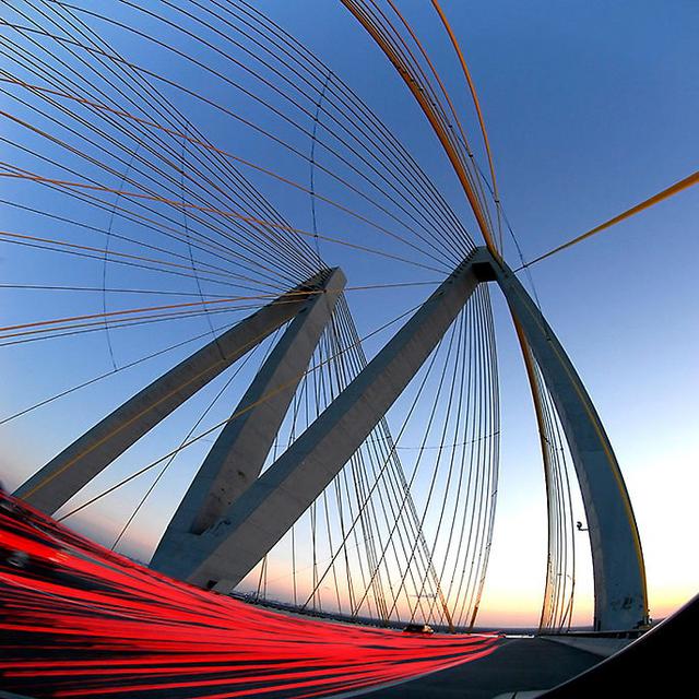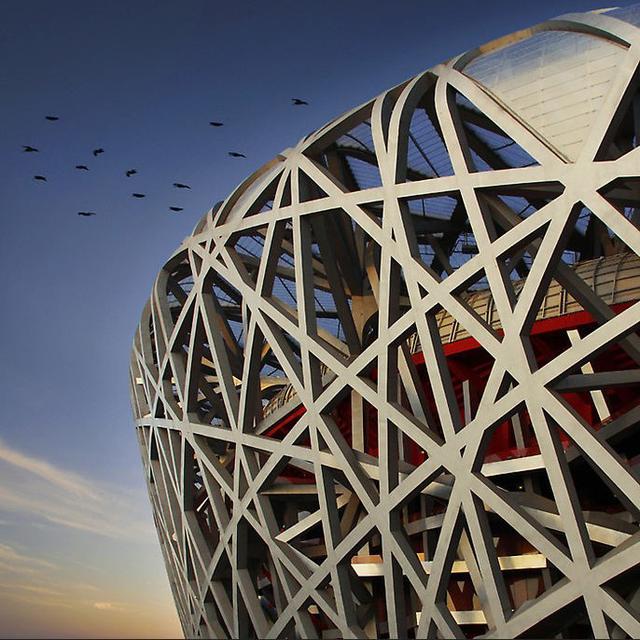 蓝天下的鸟巢体育馆一角,刚劲,有力……
