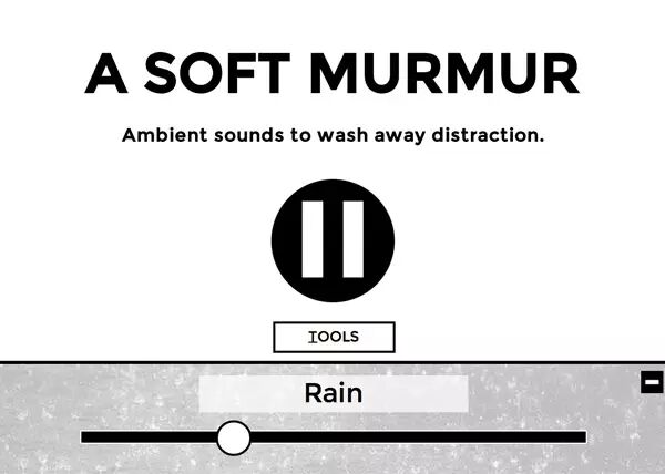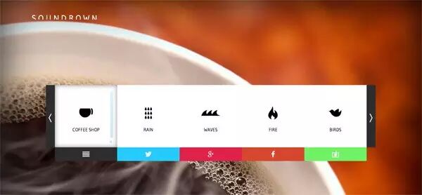 网站一进去,有3个关键词:放松、专注、逃离。的确,它成功做到了这一点。它有10种不同的声音帮助你放松心情,也可以混合使用。不同的声音对应不同的背景,网站非常有设计感,相信你会重新回来体验一次。