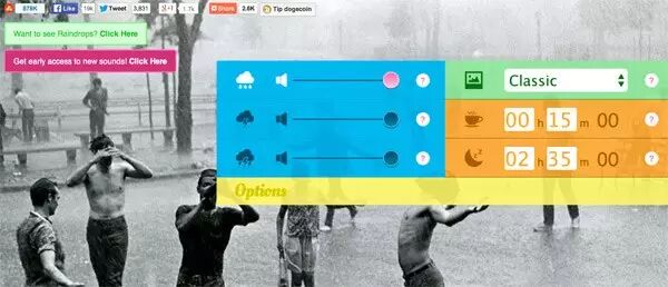 这个网站太棒了!小编玩了好久都舍不得停下来。网站让你自由创造美妙的声音。你可以通过混合不同的声音(雨声、火柴燃烧的声音、打雷声、海潮声…..不一而足。但是,总有一款令你爱不释手!)当然,声音的大小也可以自己调节。