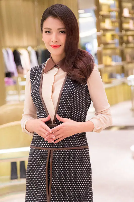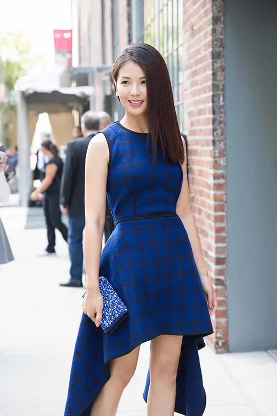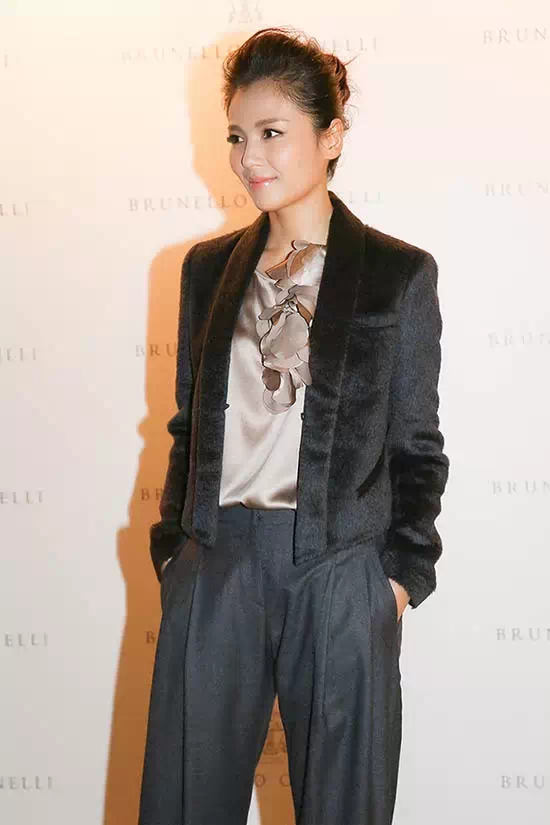 “四姐”的经典丸子头搭配俏皮短裙,标志性的招牌笑容写在脸上,即使是黑白灰的基础色,因为有了巧妙的搭配和别致剪裁,不仅不会有呆板之感,反而是灵气十足。