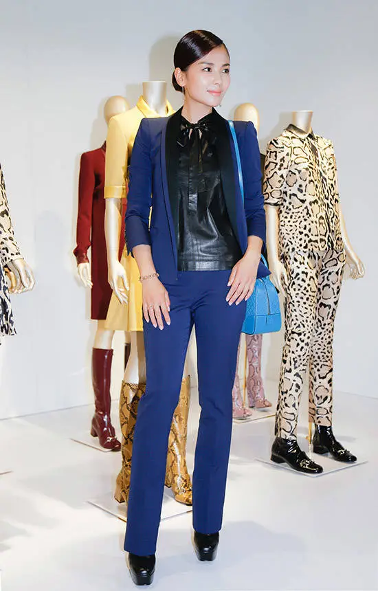 干练的套装搭配精致的妆容,自信从容的微笑,帅气利落,女王气场十足,展现出刘涛在柔美之余更是有着英气的一面。