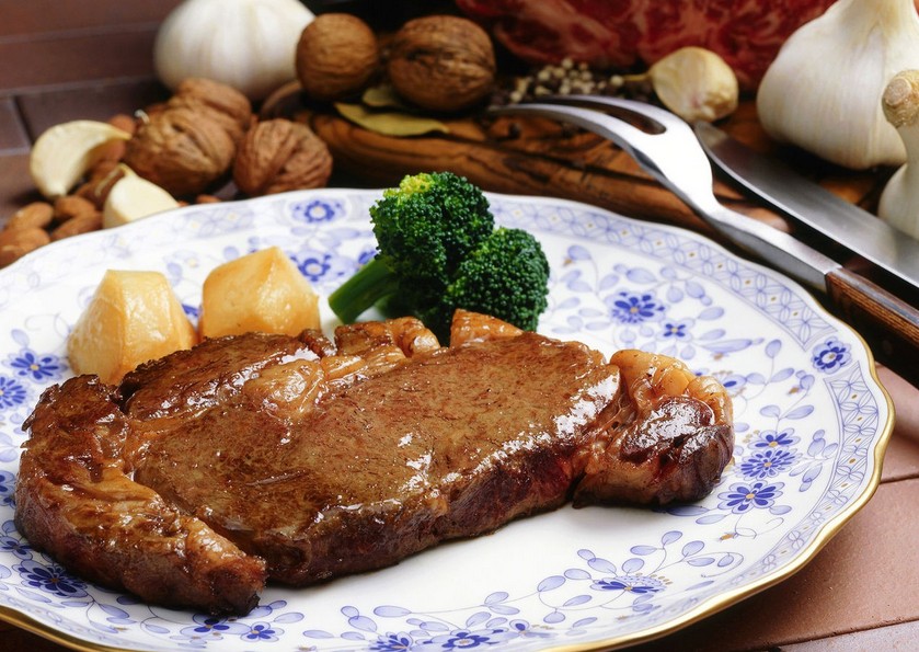 1. 嫩小牛排洗净擦干,洒少许盐,黑胡椒,用刀背拍松