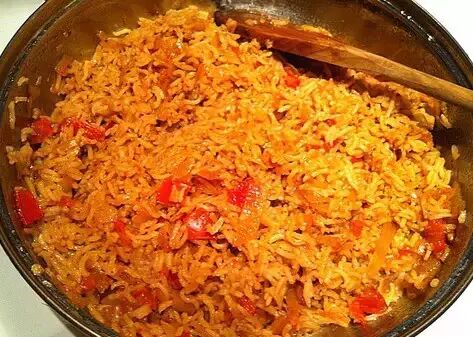 2. 加入生米!还有番茄碎,炒一下,让洋葱和大蒜和番茄的香味紧紧的裹着羞涩的生米粒。然后加入高汤,辣椒粉和盐