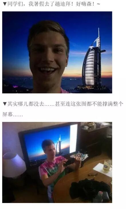 记得以前啊,常常坐着爸爸的私人飞机,带上我时尚的冲浪板去黄金海岸冲下小浪。来,把手机给我,我教你如何在海边拍照。首先要突出海洋、沙滩、比基尼,和各种透露所在地区的标志。因此我们的站位是――背朝大海,春暖花开。