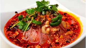 成都地区人人皆知的一款风味名菜。相传在30年代,成都少城附近,有一男子名郭朝华,与其妻一道以制售凉拌牛肺片为业,他们夫妻俩亲自操作,走街串巷,提篮叫卖。由于他们经营的凉拌肺片制作精细,风味独特,深受人们喜爱。为区别一般肺片摊店,人们称他们为"夫妻肺片"。设店经营后,在用料上更为讲究,以牛 肉、心、舌、肚、头皮等取代最初单一的肺,质量日益提高。为了保持此菜的原有风味,"夫妻肺片"之名一直沿用至今。
