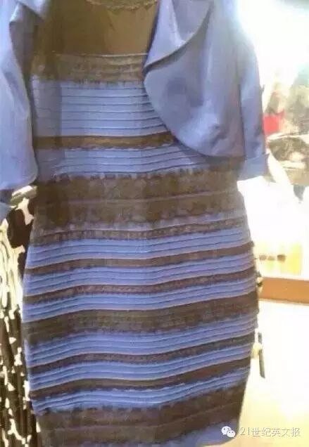 据解释,我们之所以能看到各种颜色和图像,是因为光透过晶状体进入眼睛,不同波长的光对应不一样的颜色。光线打在眼球后部的视网膜上,色素感光后通过神经连接将信号传入视觉中枢――在那里,大脑将这些信号处理成图像。严格来说,我们看到的光是从物体上反射出来的,受限于光源的波长组成。但大脑会自动辨认射过来的光的颜色,并将这个颜色从该物体的“真实”颜色中削去。华盛顿大学的神经科学家杰伊?内兹(Jay Neitz)说,“我们的视觉系统会舍弃掉有关光源的信息,而提取反射光的信息。我研究彩色视觉的个体差异已经30年,这裙子是我见过最大的个体差异案例之一了。”(内兹看到的是白色和金色。)