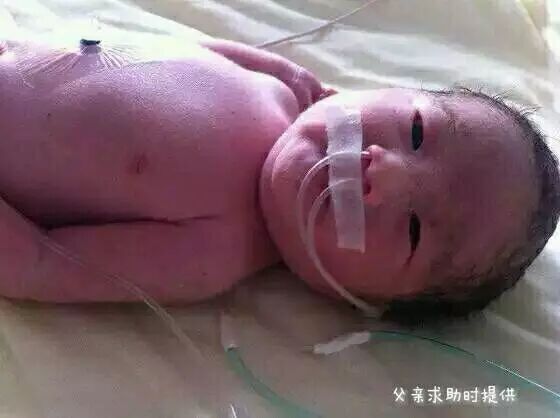 尚尚出生体重只有2.2公斤,孩子已经从出生一直不吃东西,肚子鼓起来,并且一直在吐黄水。医生给出生只有三天的尚尚灌肠两次,洗胃两次后,无奈的通知:“孩子必须立刻转入省医院!”