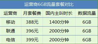再以6GB流量套餐为例,相同的通话时长和流量,联通要更便宜一些。与移动相比,虽然联通的套餐费多一点,不过其通话时长要多出10个小时,因此在这个流量档位上,联通套餐相对优惠一些。