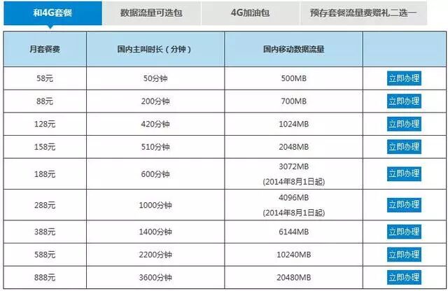 如果超出了4G套餐流量,运营商也为用户准备了流量可选包。