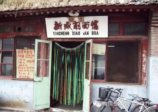 粮食店街位于前门大街往西50米,穿过插着彩旗的老北京小吃店,来到一处简陋的平房。门不大,正上方的牌匾已经斑驳,上面刻着:“国营新成削面馆”。