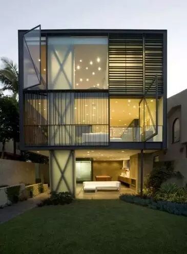 出自于伊朗建筑师格伦的作品,位于加州洛杉矶威尼斯运河。挑战的项目是为了户外空间最大化,创造一个似乎倒着盘悬在地面上的。