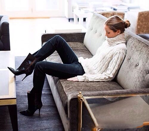 四、渔夫毛衣配平胸,慵懒不臃肿。