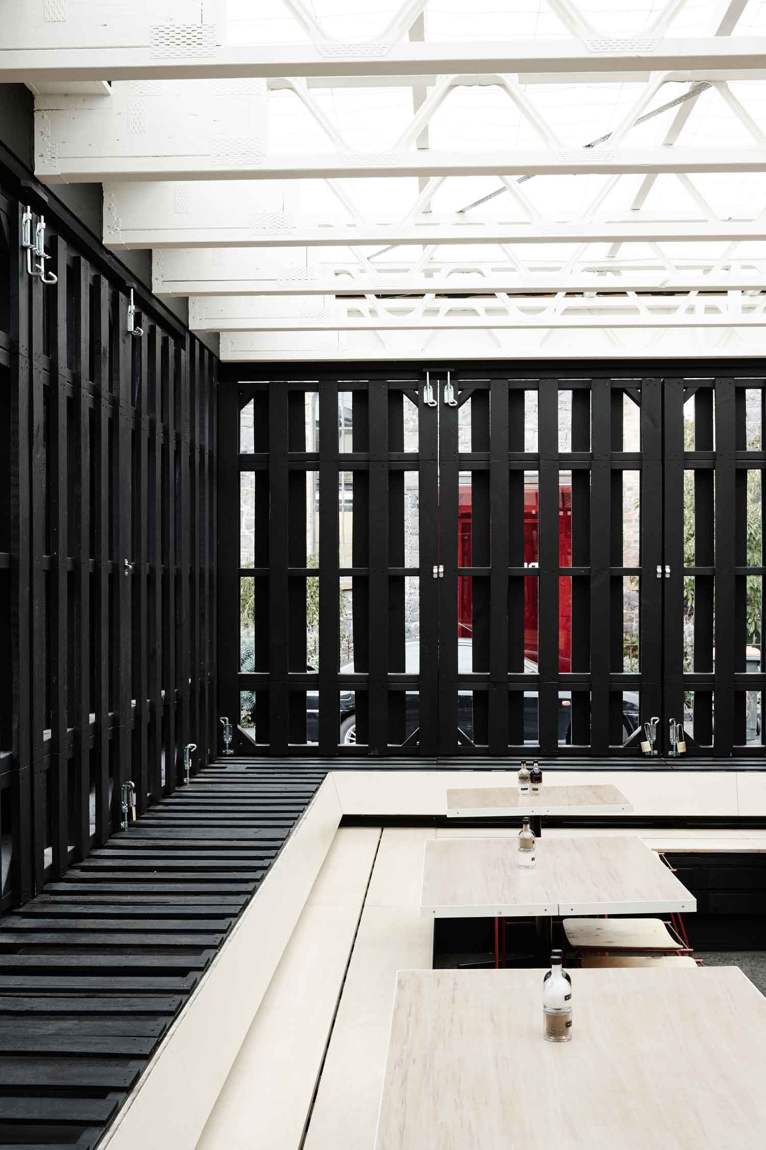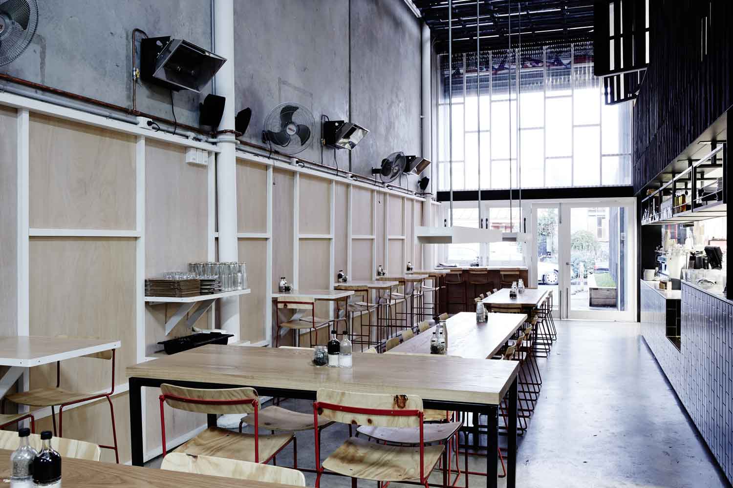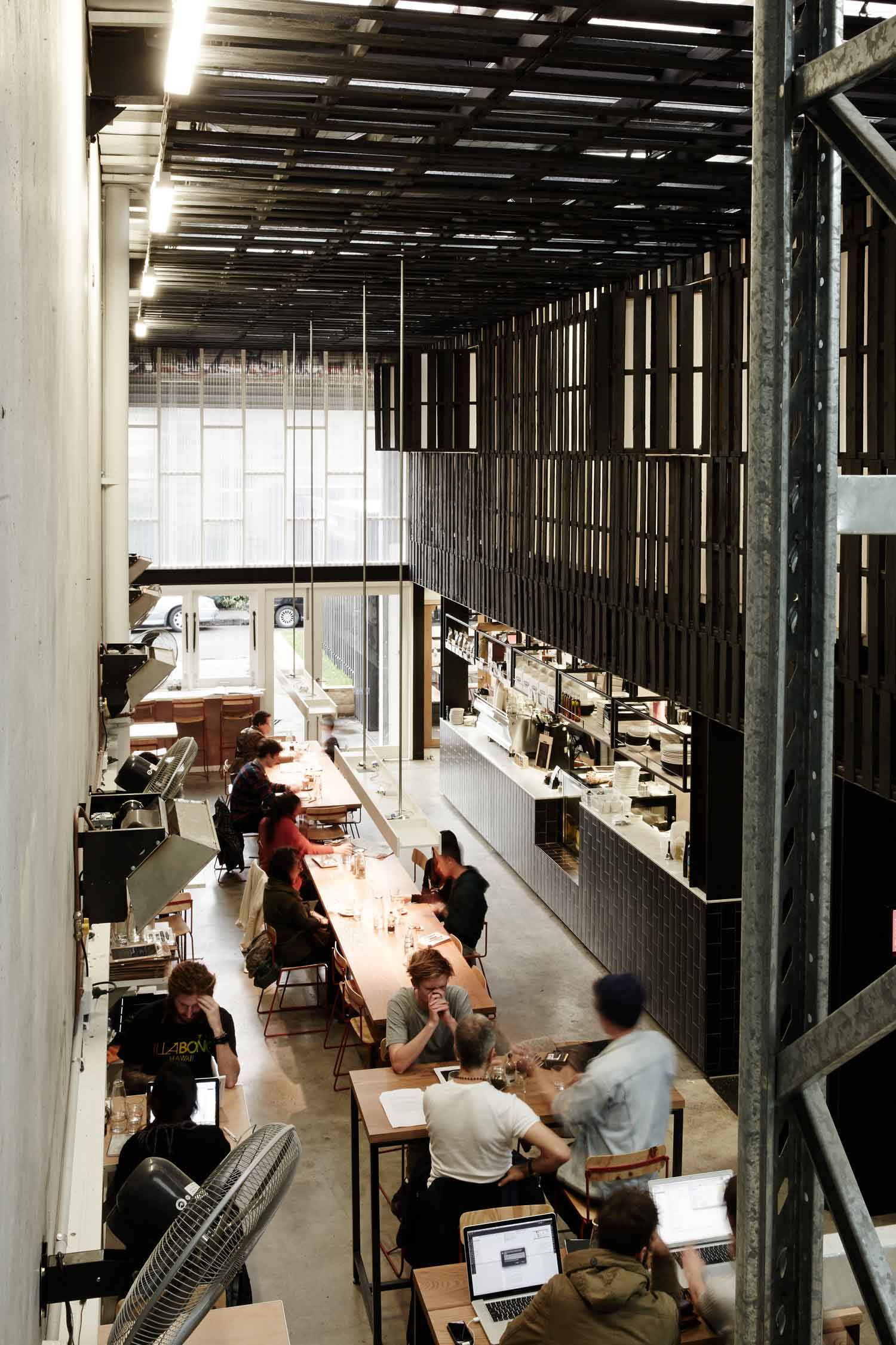 Industry Beans咖啡馆像极了一间“食堂”,狭窄但亲密无间。由澳洲建筑设计工作室Figureground操刀设计,也是他们第一次接到的改造仓库的项目。墨尔本的巷道文化启发了设计师们,他们利用天花板的挑高优势,为咖啡厅提供清晰的视角。 Figureground的目的是想把一件冰冷空旷的仓库变身为一个充满活力、温暖的空间,经过各种高矮桌椅的精心布局,鼓励着人们“向内看”。你可以在这里享受周末的早午餐,瞥见开放式厨房专业酿造咖啡的全过程,即便是工作日,也可以拉上伙伴们开展你们的灵感大碰撞。
