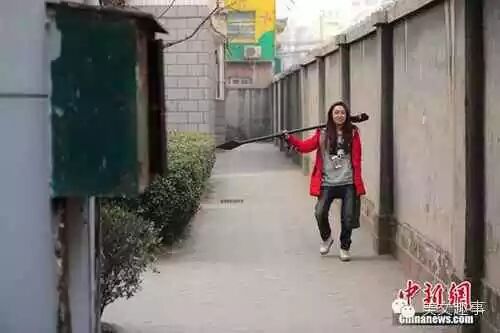 在楼下,小雪扛着“魔法杖”,古灵精怪的性格让她心里很快乐。