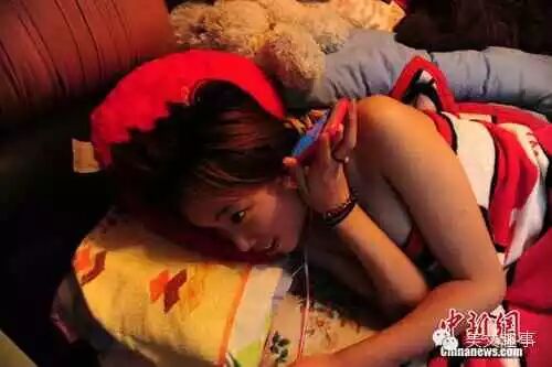 化妆完毕后,小雪大口吃饭。在做网络主播的日子里,她大多只吃这一顿饭,播完网络节目后已经非常困,基本是躺倒就睡。