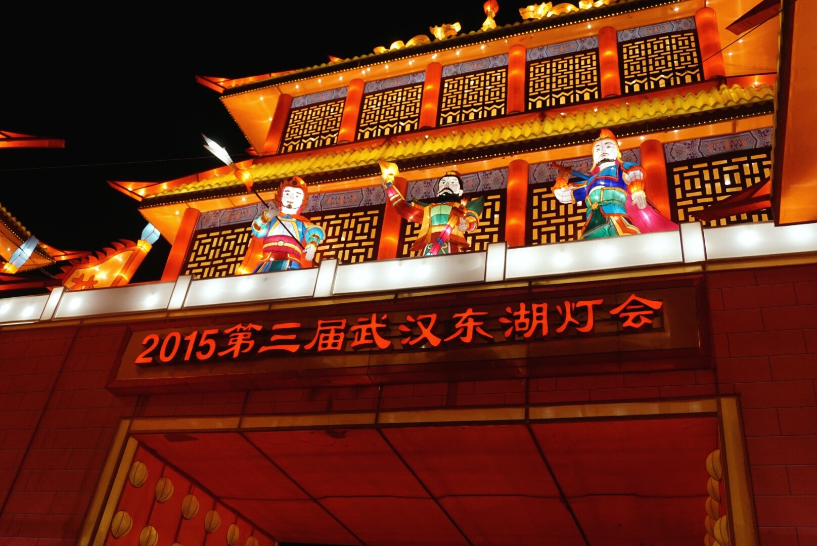 第一大主题:乐在东湖?欢度羊年 梨园大门外的“楚王迎宾”灯组气势恢宏,以湖北楚文化为创意灵感,楚王项羽、将领龙且、虞之期登上30米高的城楼,欢迎各方宾朋的到来,气势恢宏,吸引眼球,营造出“身为入城,心临其境”感觉,磅礴的楚文化气息扑面而来。开启了第三届武汉东湖灯会的序幕。“一进梨园大门口,一首悠悠牧羊曲仿佛能让人心得以平静,羊群随着音符跳跃,带领游人走进灯的“海洋”。营造出一片和谐的美景,展现出动人的画卷。
