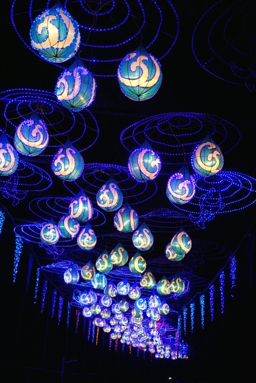 赏灯区域从东湖梨园大门至碧潭观鱼,共有六大主题灯组区:乐在东湖?欢度羊年、爱在东湖?浪漫之旅、盟在东湖?快乐童年、吃在东湖?美食之旅、多彩东湖?创新发展、文化东湖?历史传承。此次灯展不仅气势恢宏、制作精巧,还融入了羊年文化、爱情主题的浪漫元素。