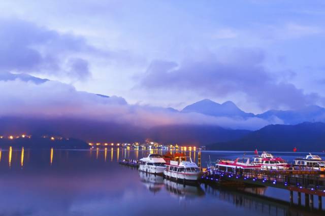 日月潭位于阿里山以北、能高山之南的南投县鱼池乡水社村,旧称水沙连、龙湖、水社大湖、珠潭、双潭,亦名水里社。日月潭湖面海拔748米,常态面积7.93平方公里(满水位时10平方公里),最大水深27公尺,湖周长约37千米,是台湾外来种生物最多的淡水湖泊之一。它以潭拉鲁岛为界,北半湖形状如圆日,南半湖形状如弯月。2009年,日月潭入选世界纪录协会“台湾最大的天然淡水湖”,在清朝时即被选为台湾八大景之一,有“海外别一洞天”之称。
