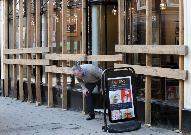 整个小镇都是球场,街边的店铺外都增加了护栏,有标语提示小心停车,但仍有汽车未能幸免。