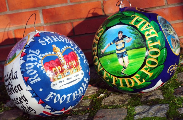 忏悔节足球不同于普通足球,它更大、更沉、由手工缝制,里面塞满木屑和羽毛。进球者可以保管足球,并将其表面图案重新绘制。