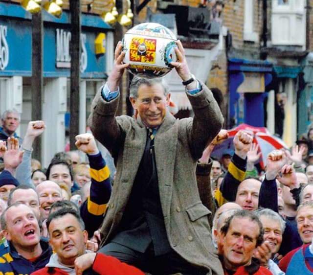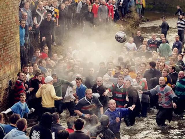 这就是“忏悔节足球赛”,在每年的“忏悔星期二”和“圣灰星期三”举行。忏悔节是大斋期的前一天(“圣灰星期三”即大斋期的首日),中世纪的基督徒会在这一天思罪补赎,不过在后世逐渐发展成为民众的狂欢节日,不同国家的庆祝方式千差万别。在英国,别具特色的足球赛就是忏悔节的一大特色。