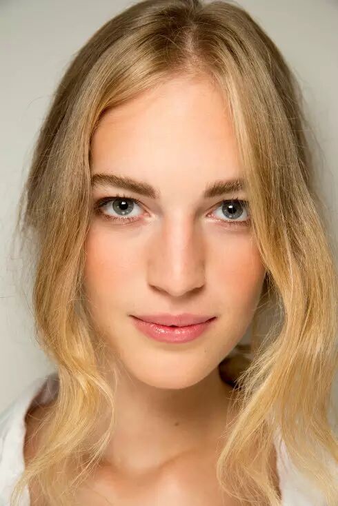 春天女孩是MichaelKors秀里的最大特点,晒后健康的白里透红妆效,轻松休闲的妆感。透亮底妆配合健康橘色,亲切温柔。