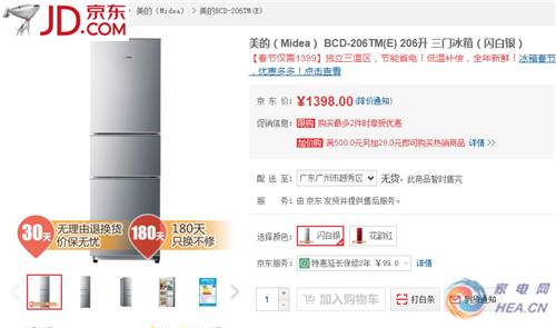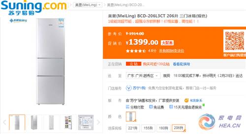 原价1914元现价1399元,这款206升的美菱三门冰箱受到不少人的欢迎,1级能效的超节能日耗电量只有0.4度,超强冷冻能力锁住新鲜,是这款冰箱的两大闪光点。