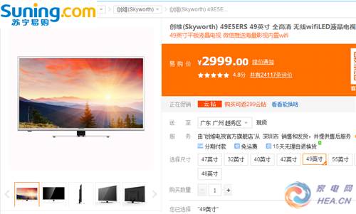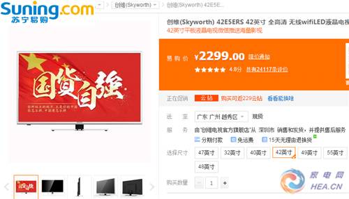 本周电视TOP2与TOP1同为创维E5ERS系列产品,春节期间这个系列产品在苏宁易购的热销程度可见一斑。微信推送、免费海量影视、WIFI自由连三个主要卖点以及“国货自强”的字样,成就了这个系列电视,更别说春节期间电商优惠活动的助力。