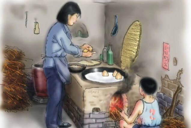 16.凤凰老牌大自行车比人还要高,右脚穿过三角形的车架,居然也能骑得那么熟练。