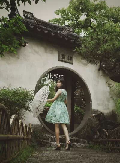 苏州园林是是充满文化气息的地方,所以我穿了比淡雅的裙子,专门买了个蕾丝伞,凹造型就不用愁了。
