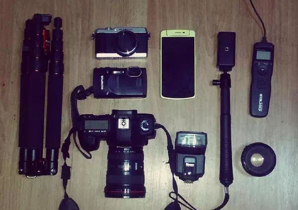 来晒一张我在旅行自拍的终极装备,这次是刚好有机会在编辑部里到处搜刮玩意儿,事实上,带着他们的我快要累死了!但是这张图中有很多好东西能让你拍得更好~