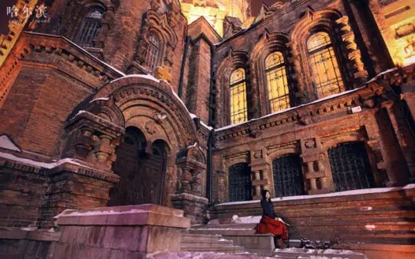 相机放在栏杆的狮子头上,由于右侧都是阴影,所以我计划出现在左侧阳光中的台阶上,拍完后发现由于右侧的腿在边缘,所以有很强的拉伸感。