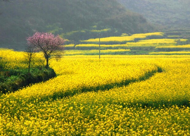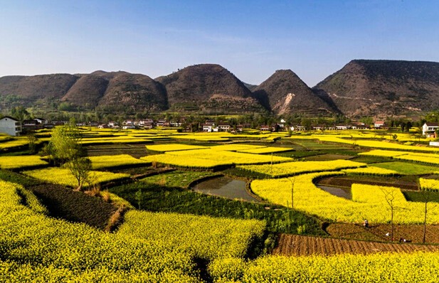 地处秦巴山区的陕西省汉中市,有112万亩油菜花,年产油料14.4万吨。每年春天,盛开的油菜花与镶嵌其间的麦苗及青山绿水相互掩映,构成汉中盆地一道亮丽的风景线。