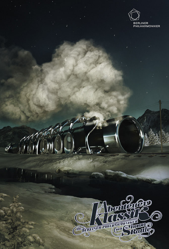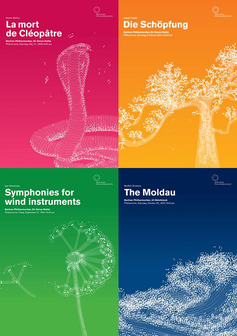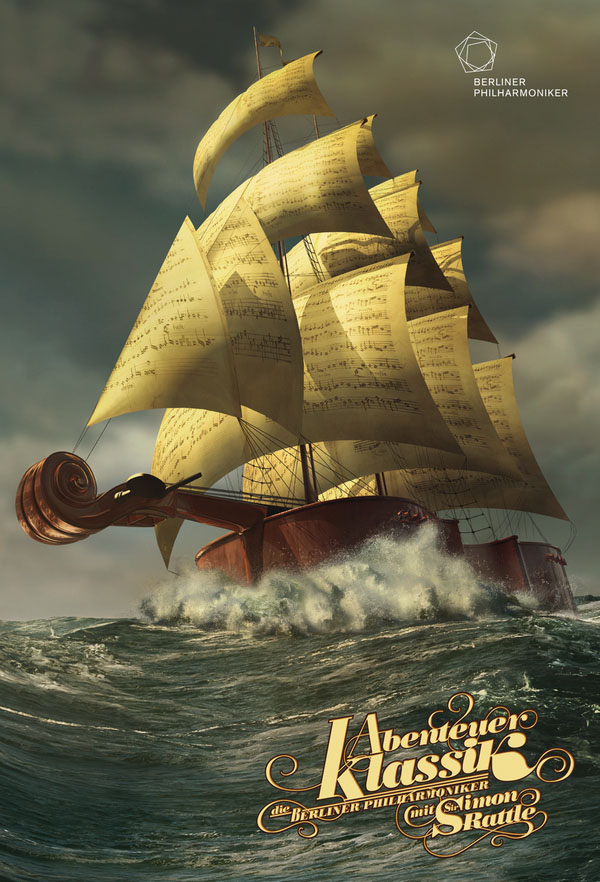 今天,全球范围的艺术设计、环境艺术、工业造型,都直接或间接受到德国当年的包豪斯现代主义设计思想的影响。德国人严谨但不拘谨,德国艺术更是如此。看看下面几组“柏林爱乐”海报,天马行空的创意想象,让人叹服。