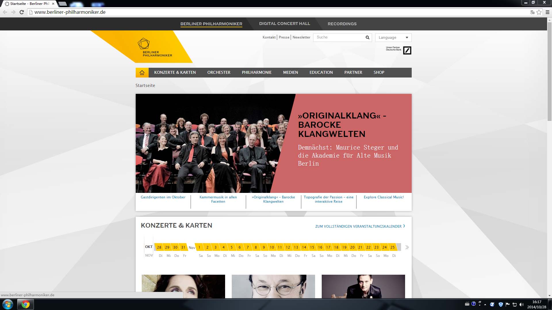 “柏林爱乐”官网(小编自己截的屏,请无视Chrome吧)