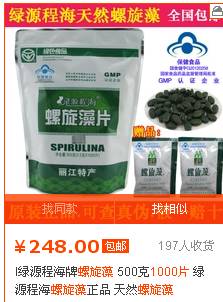 来来来,先来第一个,轻量级的,丽江特产螺旋藻片,290块一包,一包1000片。你们知道他们总共买了多少伐。。。
