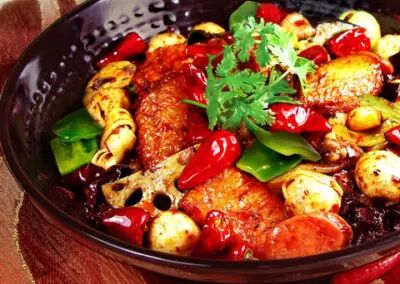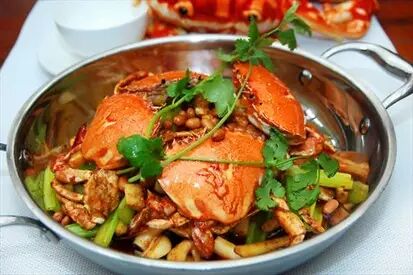 蟹老宋香锅酒楼可以说是香辣蟹的一个代表。所选用的蟹都是从缅甸空运而来,个体适中的专用蟹。此蟹的最大特点就是皮薄肉厚、不伤牙。蟹老宋采用一种湖北家乡原料经慢火精熬制的酱料,而不是由辣油炒制的,烹出的香辣蟹风味独特、鲜香无比。食后加汤,涮一些青菜、豆皮、肉类等更是回味无穷。