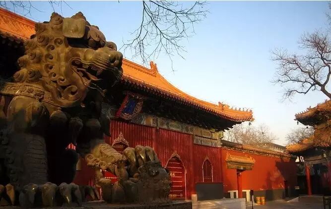 雍和宫是北京最大的藏传佛教寺院,也是京城香火最旺的地方之一。雍和宫原先是雍正即位前的府邸,乾隆九年才改为藏传佛教寺院。三座精致的牌坊和雍和门、雍和宫殿等,巍峨壮观,具有汉、满、藏、蒙各种民族特色。