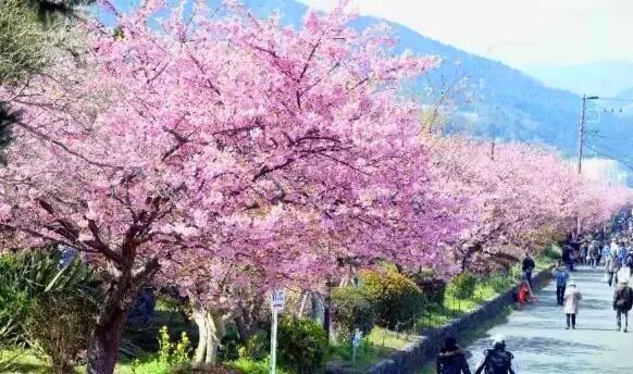 由于伊豆半岛地理位置及气候和河津樱花树品种配合下, 河津樱在每年二月早春之时多达7000棵河津樱树,开始绽放,三月上旬满开.预赏时间:约2月中旬-3月上旬,喜爱日本樱花的朋友有福了。