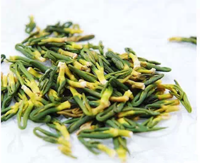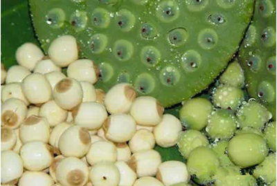 为成熟莲子种仁内的绿色胚芽,民间常用以泡茶饮,有清心火,止遗精的作用,对心肾不交、阴虚火旺的遗精患者,食之最宜。如《随息居饮食谱》所云:“莲子心敛液止汗,清心安神,止血固精。”《温病条辨》中亦说:“莲心,由心走肾,能使心火下通于肾,又回环上升,能使肾水上潮于心。”这正是莲子心交通心肾的解说。《医林纂要》还介绍一法:“治遗精:莲子心一撮,为末,入辰砂一分。每服一钱,白汤下,日二。”这更增强了清心去热的作用。