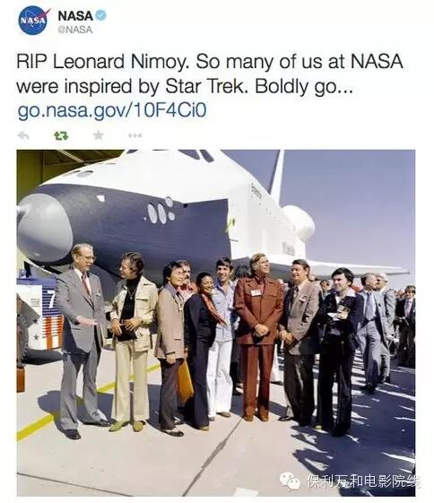 美国航天局也表达了对尼莫伊的悼念:NASA很多人都曾被《星际旅行》所激励,勇往直前吧……