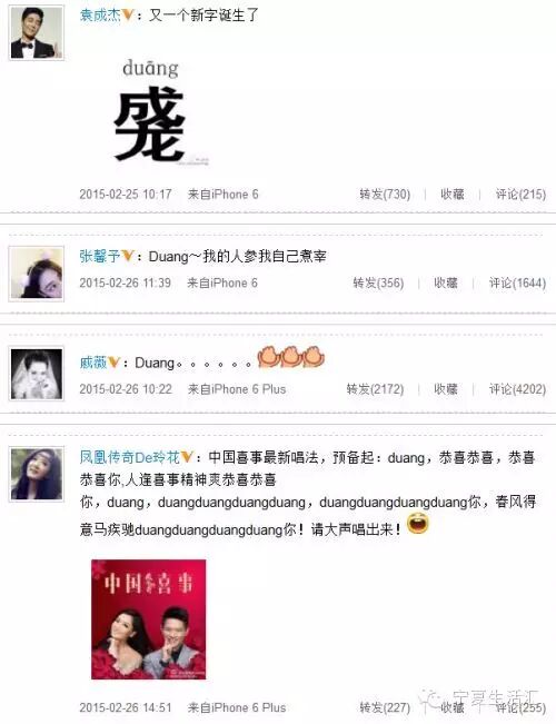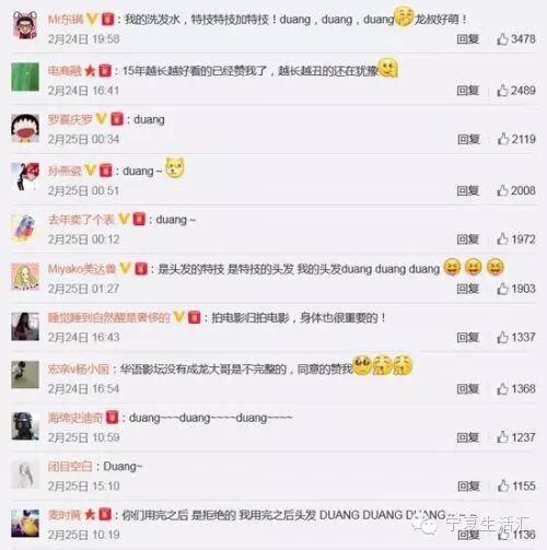 这两天,不少明星也发微博开始调侃“duang”这个梗………………
