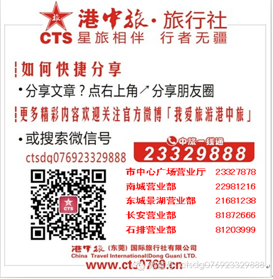 功能介绍 香港中旅集团旗下旅行社。港中旅(东莞)国际旅行社官方微信。专注旅游服务提供商。国内外旅游 签证 机票 订房 会展接待 会议接待 学习考察接待等