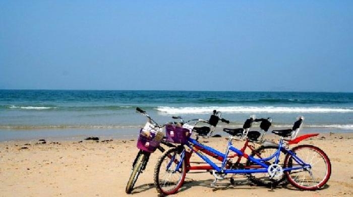 14:00分前往杨梅坑,开始挑选单车。那里有单、双人自行车大家可以自由搭配,(一般都是男女搭配咯)男女搭配干活不累嘛....哈哈.....分配完单车后,“铃铃铃……”快乐的车铃声中,开始我们下午的休闲单车海滨游......自行车在美丽的沿海公路缓缓前行,海风飘动你的黑发,发稍后是你初识的好友,或是你的至爱,或是你的孩子,而眼前是蓝蓝的大海,心是如此的轻,所有生活中的繁琐都不见,唯有写在你脸上的幸福与满足――快乐有时真得很简单。