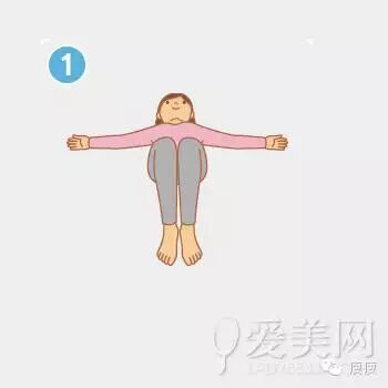 ①面部朝上躺下,两手与肩齐平向两侧伸直,膝盖立起。建议一边听着音乐一边做比较好。