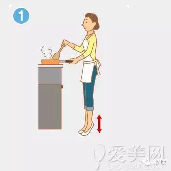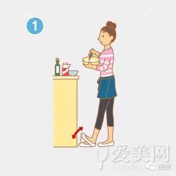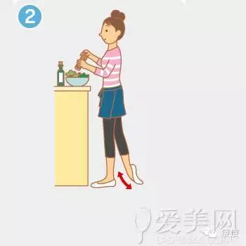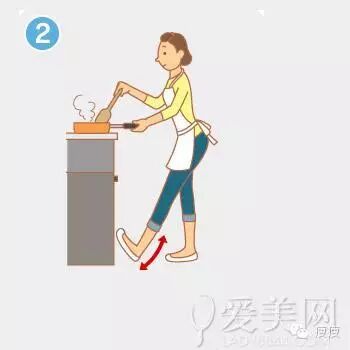 方法一:脚尖上下左右各30次+拉伸小腿肌肉左右各15秒――边做家务,边锻炼
