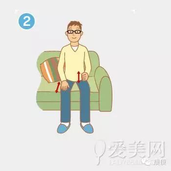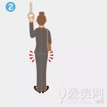 ②在①动作的基础上,把小腿肚、膝盖、大腿的内侧尽量紧贴,左右臀部的肌肉用力收紧。
